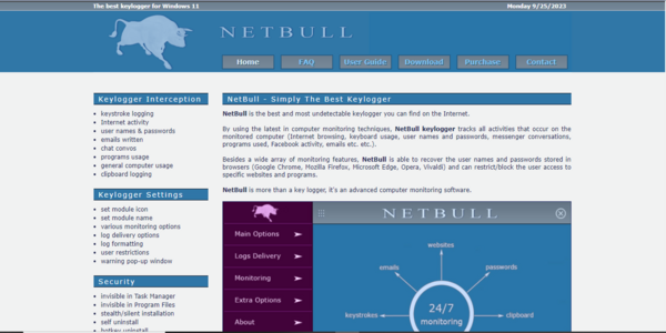 - Keylogger NetBull: Jest to najlepszy i najbardziej niewykrywalny keylogger dostępny online. Jest to całkowicie tajne, przyjazne dla użytkownika i praktyczne oprogramowanie szpiegowskie z kilkoma opcjami konfiguracji.