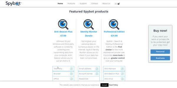 Zapewnia rozwiązania chroniące przed oprogramowaniem szpiegującym, złośliwym oprogramowaniem, natrętnymi plikami cookie, blokowaniem reklam, usuwaniem niechcianych aplikacji, zarządzaniem uruchamianiem i skanerami rootkitów dla Twojego urządzenia. Spybot obsługuje Windows 7 i 10 i nie wymaga tworzenia konta do pobierania (jest to opcjonalne).