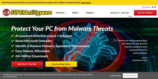 SUPERAntiSpywarekiedyś było całkowicie darmowym oprogramowaniem, ale ostatnio się to zmieniło. Program oferuje teraz 14-dniowy bezpłatny okres próbny, a jeśli chcesz go nadal używać, będziesz musiał zapłacić 39,95 USD + podatek za wersję Pro (za 1 komputer).