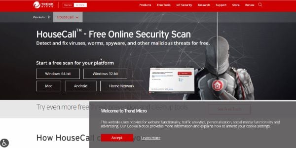 Jedną imponującą rzecz, którą zauważyliśmy naWitryna TrendMicropodczas naszych badań i testów jest bezpłatne skanowanie bezpieczeństwa online. Umożliwia bezpłatne wykrywanie i naprawianie oprogramowania szpiegującego, robaków i wirusów w Internecie.