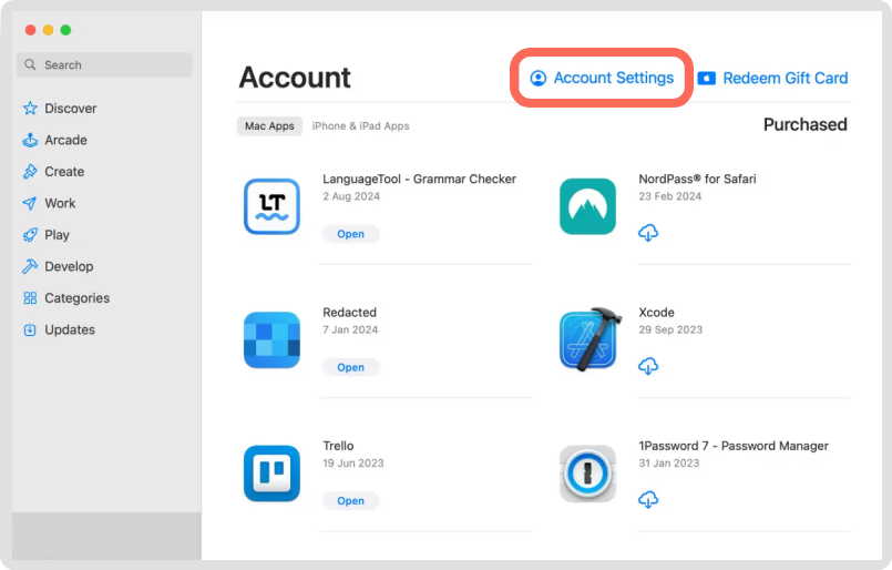 - Na komputerze Mac”Sklep z aplikacjami”, kliknij swoje zdjęcie profilowe lub swoje imię i nazwisko po lewej stronie ekranu.