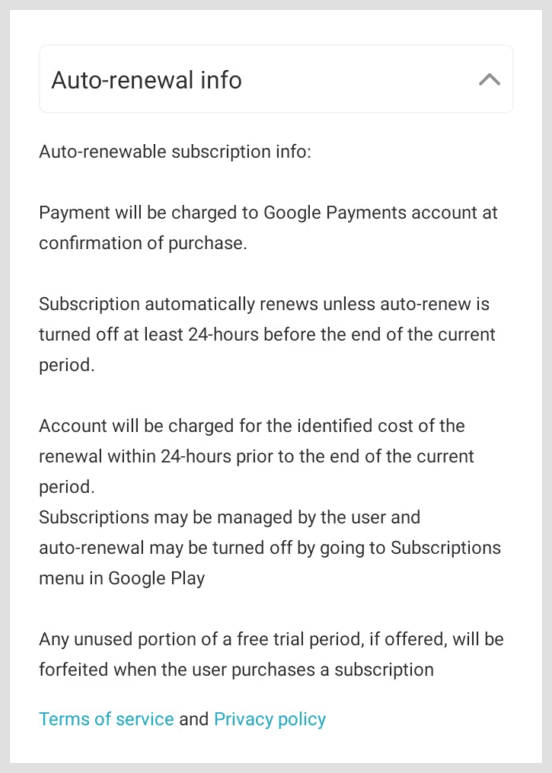 - Przycisk przełączania automatycznego odnawiania. Możesz wyłączyć tę opcję bez żadnych problemów, aby uniknąć opłat.