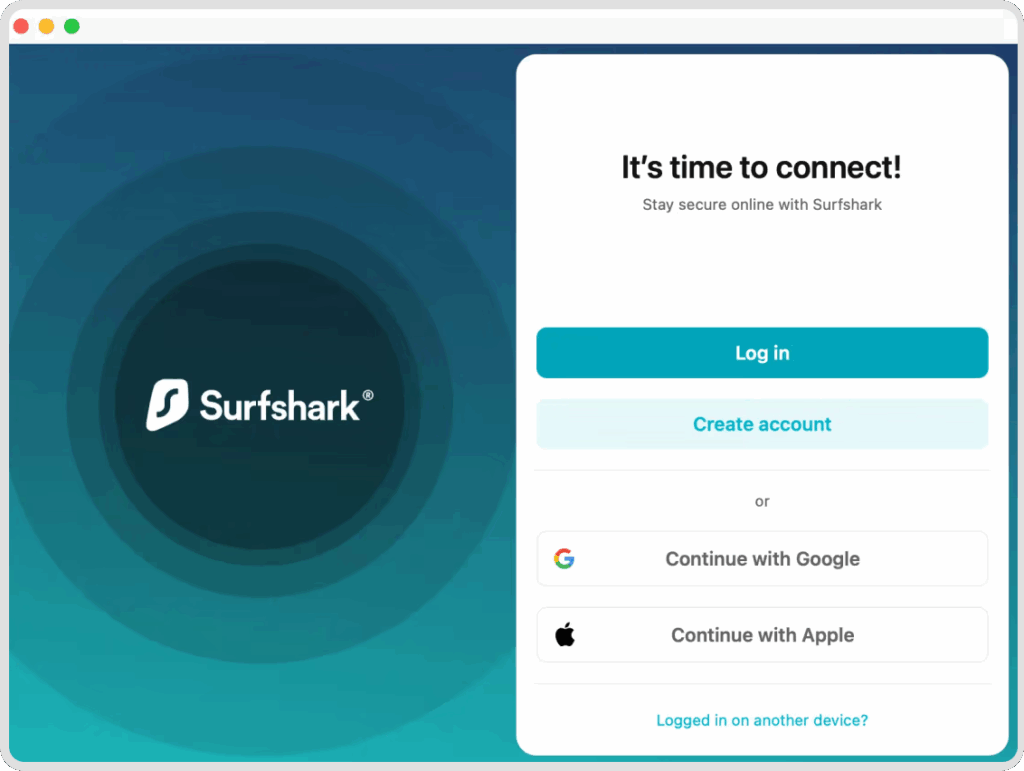 Zaloguj się do Surfshark przy użyciu tych samych danych uwierzytelniających, których użyłeś do rejestracji platformy na swoich urządzeniach.