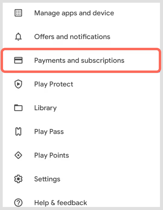 - Znajdowaćtwój "subskrypcje" pod "Płatności i subskrypcje”.Trzaskna tym.