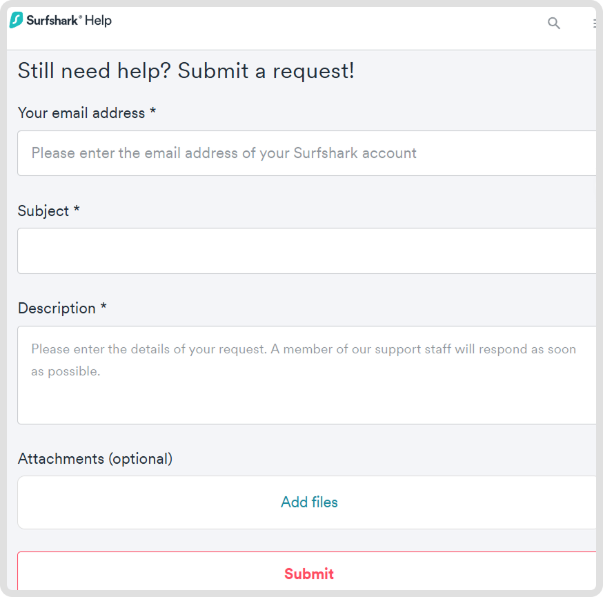 - Wchodzićnazwę swojego konta Surfshark i adres e-mail, aby uzyskać dostęp do agenta na czacie.