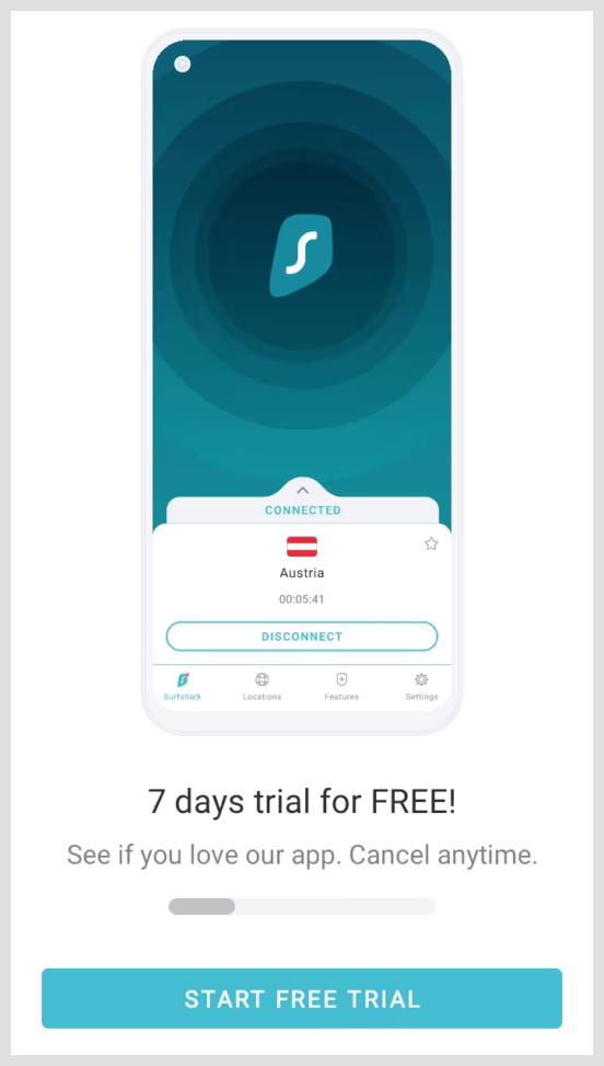 - Surfshark nie pobierze żadnych opłat, jeśli anulujesz subskrypcję przed zakończeniem bezpłatnego okresu próbnego.