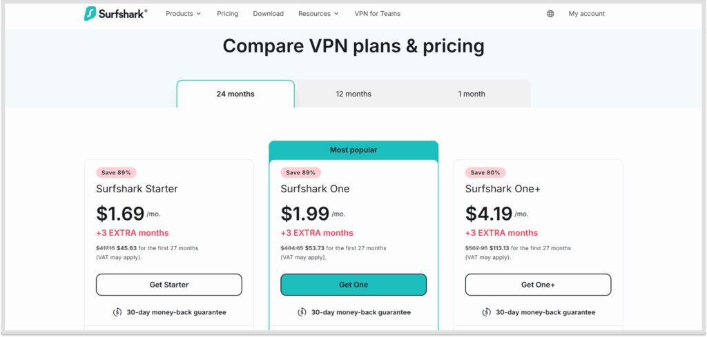 - Nawigowaćdo „Pobierz Surfshark” w prawym górnym rogu ekranu komputera Mac, aby zobaczyć dostępne plany.