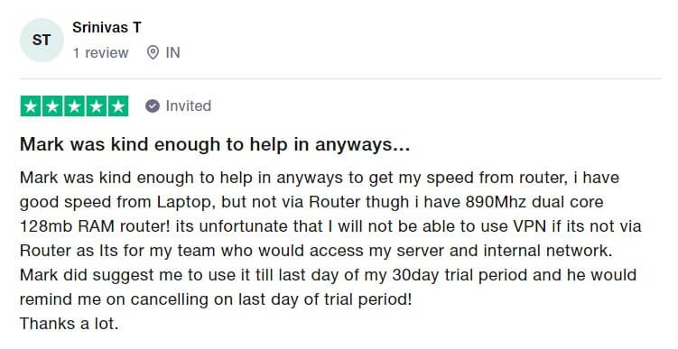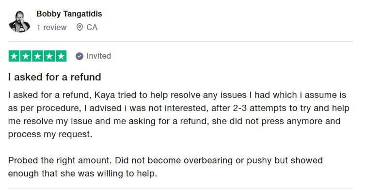 W serwisie Trustpilot VPN ma ocenę 4,4 gwiazdki (po ponad 26 900 recenzjach), co jest całkiem dobrym wynikiem. Firma ma doświadczenie w spełnianiu próśb użytkowników o zwrot pieniędzy bez zadawania pytań. Oto kilka recenzji zwrotów, które warto sprawdzić: