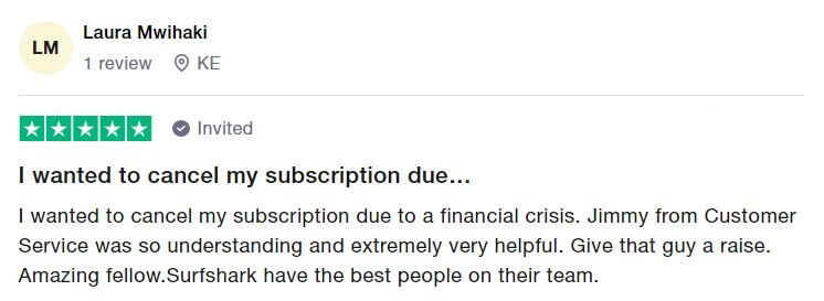 Ponadto 30-dniowa gwarancja zwrotu pieniędzy Surfsharkpozwala testować funkcje premium bez ryzyka. Oznacza to, że jeśli kupiłeś go za pomocą Internetu, a nie aplikacji mobilnych, nadal możesz poprosić o zwrot pieniędzy. Pamiętaj, jeśli rozpocząłeś okres próbny z telefonu komórkowego i nie chcesz kontynuować po bezpłatnym okresie próbnym, musisz anulować subskrypcję przed upływem 7 dni, aby zapobiec automatycznemu naliczaniu opłat.
