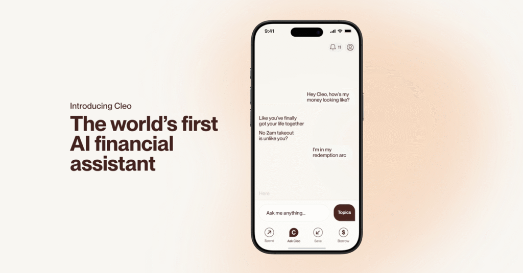 Cleo, z ponad 5 milionami użytkowników i rocznymi przychodami na poziomie 150 milionów dolarów do 2024 r., cieszy się szczególną popularnością wśród pokolenia Z. Jej sztuczna inteligencja śledzi wydatki w czasie rzeczywistym, udziela natychmiastowych porad i zachęca do lepszych nawyków dzięki grom i niewielkim zaliczkom gotówkowym do 250 dolarów.