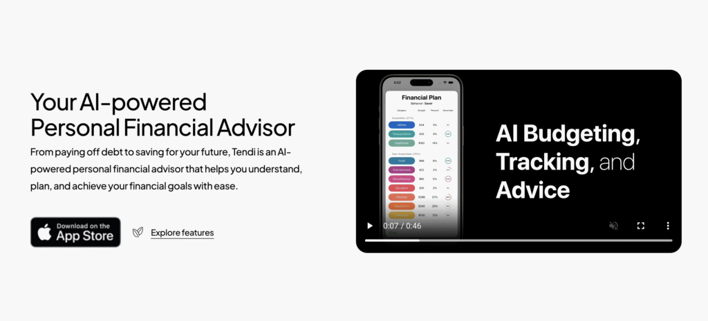 Tendi.aijest zbudowany w całości wokół sztucznej inteligencji i został przeszkolony, aby uzyskać lepsze wyniki niż GPT-4 na egzaminie CFP (Certified Financial Planner). Daje każdemu użytkownikowi niestandardowy wynik kondycji finansowej od 0 do 100, a następnie oferuje budżety i wyzwania, aby go poprawić.