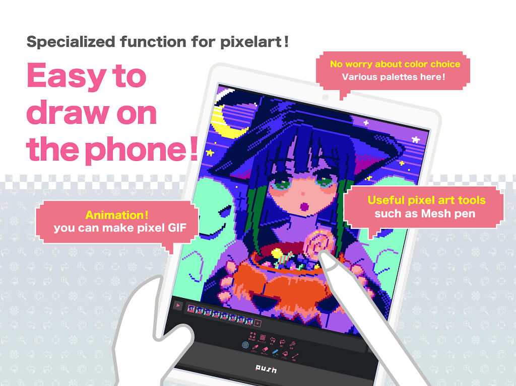 Jako ostateczny wybór wybraliśmy coś bardziej wyjątkowego. dotpict specjalizuje się w sztuce pikselowej. Zapewnia siatkę, umożliwiającą powiększanie i wypełnianie pól pikseli w celu tworzenia własnych prostych projektów. Jest to świetne rozwiązanie dla projektantów pracujących nad grami niezależnymi lub artystów, którzy po prostu kochają grafikę pikselową.