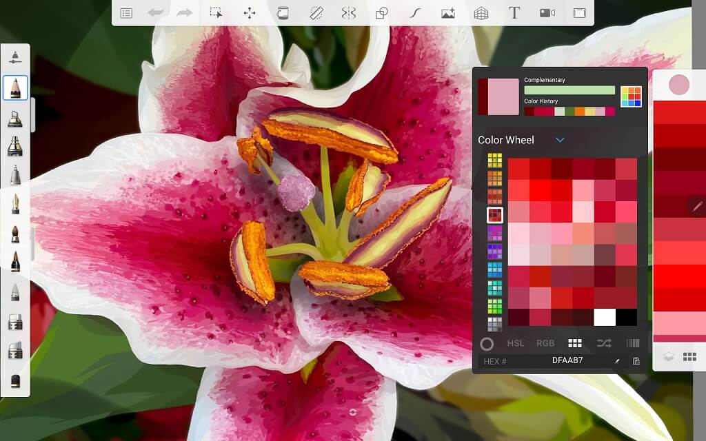 Infinite Painter jest przeznaczony dla malarzy. Aplikacja zapewnia przyzwoity wybór pędzli, narzędzi i tekstur zaprojektowanych tak, aby naśladować rzeczywiste narzędzia artystyczne.