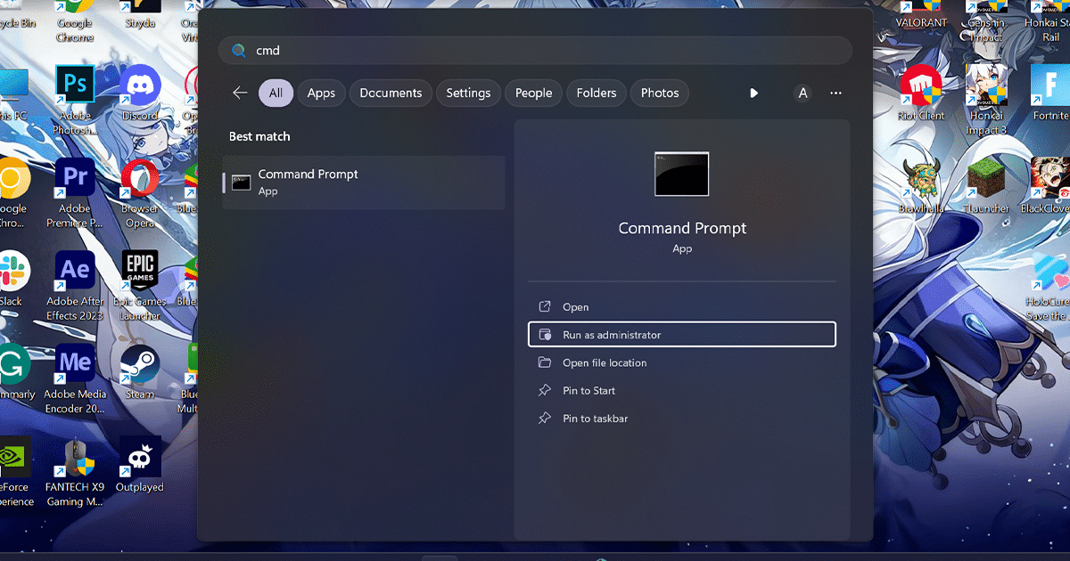 - OtwarteStart, szukajWiersz poleceńi wybierzUruchom jako administratoropcja.