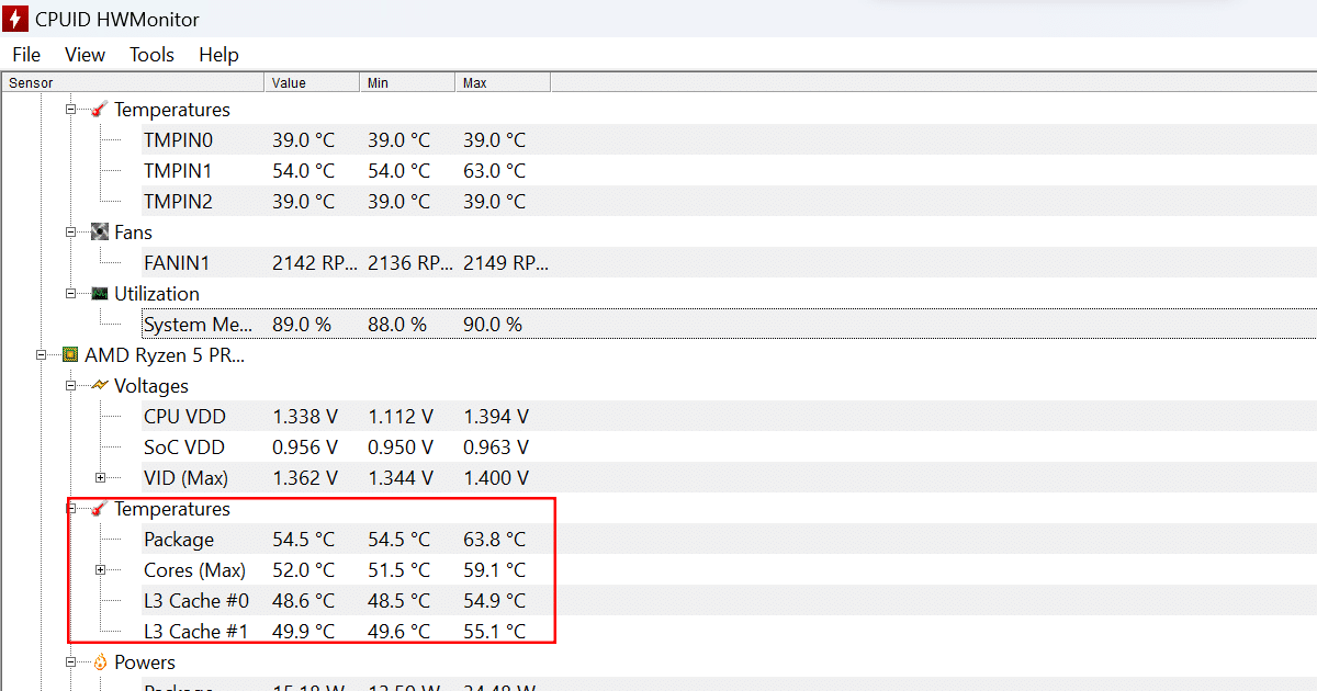 - SprawdźProcesortemperatura pod „Odczyty temperaturysekcja.
