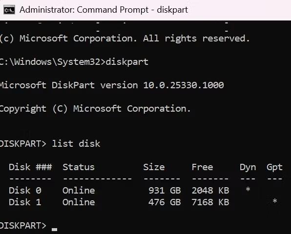 Krok 2:Typ "Dispart” w podwyższonym oknie wiersza poleceń.