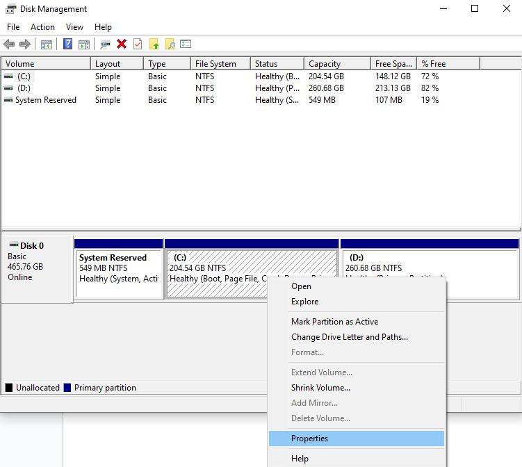 Krok 2:Aby sprawdzić styl partycji dysku, kliknij go prawym przyciskiem myszy i wybierzWłaściwości.