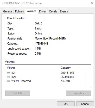 Krok 4:Aby sprawdzić styl partycji dysku, kliknijWłaściwościprzycisk obok niego.