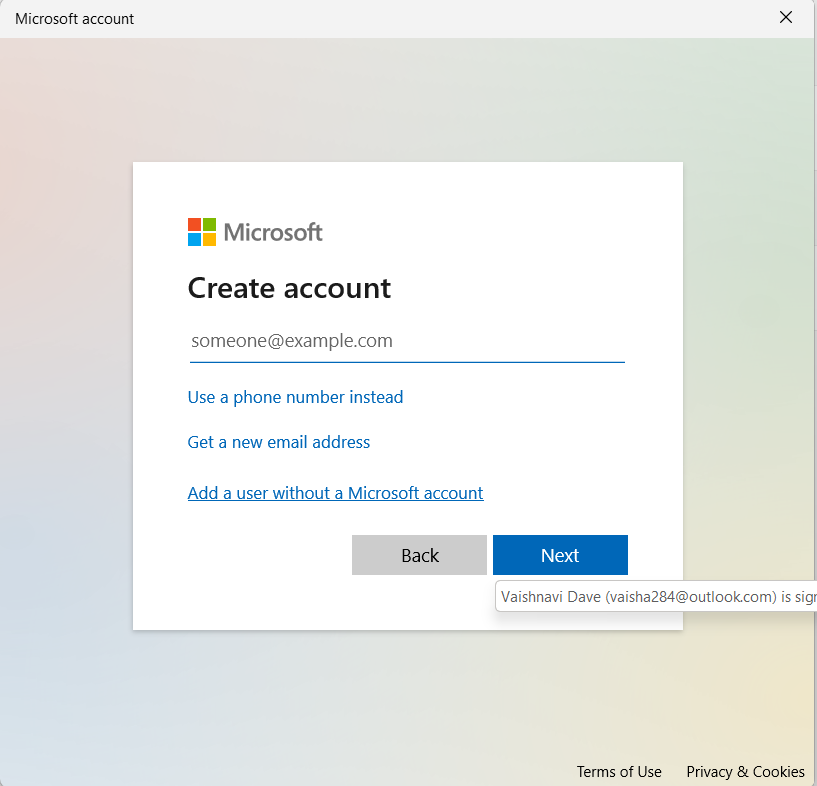 - W kolejnym oknie wybierzDodaj użytkownika bez konta Microsoft.