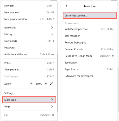 OtwórzMenu aplikacjiz trzema liniami w prawym górnym rogu. WybieraćWięcej narzędzii wybierzDostosuj pasek narzędzi.