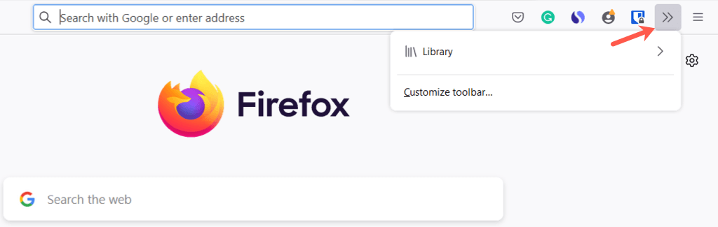 Możesz także dodać elementy do menu rozszerzonego. Dzięki temu są one przydatne, ale nie w głównej sekcji paska narzędzi. Przeciągnij element doMenu przepełnieniaokno.