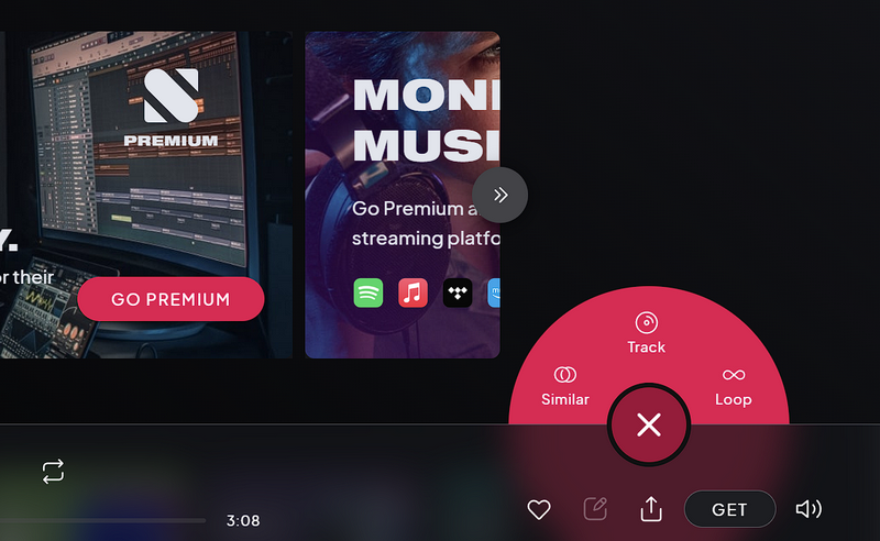 Kiedy zarejestrujesz się w Soundful, platforma zapyta, jakiego rodzaju twórcą treści jesteś i jaki rodzaj muzyki wolisz tworzyć. Po wybraniu gatunku i innych szczegółów wystarczy nacisnąć czerwony, okrągły przycisk z wykresem muzycznym w prawym dolnym rogu, aby otworzyć menu kontekstowe i wybrać opcję Ścieżka, aby rozpocząć tworzenie własnej muzyki.