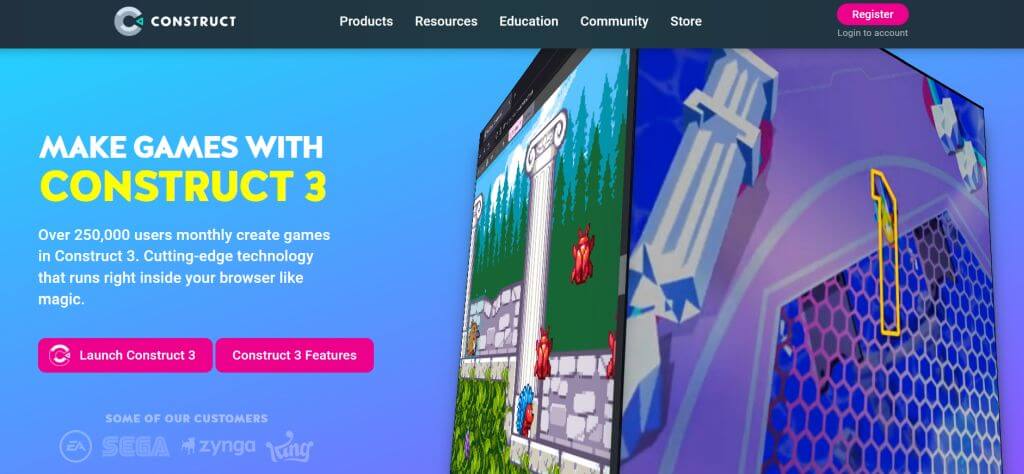 Construct 3 to świetny program używany przez firmy takie jak Sega, Zynga, EA i inne. Przydaje się głównie do tworzenia gier mobilnych na Androida lub iOS, ale można go również wykorzystać do tworzenia aplikacji komputerowych. Można go używać do tworzenia gier 2D bez konieczności posiadania wiedzy programistycznej. Jeśli jednak chcesz, możesz majstrować przy programowaniu w JavaScript.
