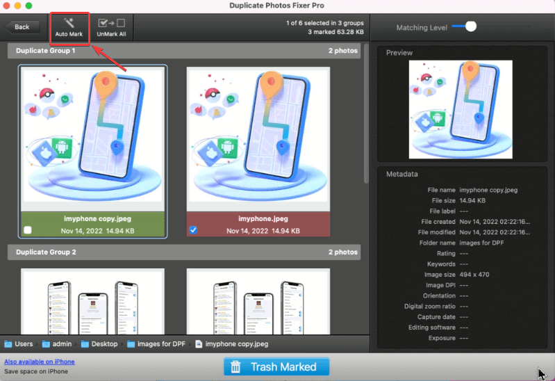 W tym przypadku mądrym posunięciem jest użycie narzędzia do usuwania zduplikowanych zdjęć. Weźmy na przykład Duplicate Photos Fixer Pro. Przeprowadza dokładne skanowanie, pomaga wykryć i usunąć dokładnie i podobnie wyglądające zdjęcia za pomocą zaledwie kilku kliknięć. Automatycznie porządkuje duplikaty według grup, dzięki czemu możesz dodatkowo automatycznie oznaczać duplikaty zdjęć w każdej grupie jednym kliknięciem.