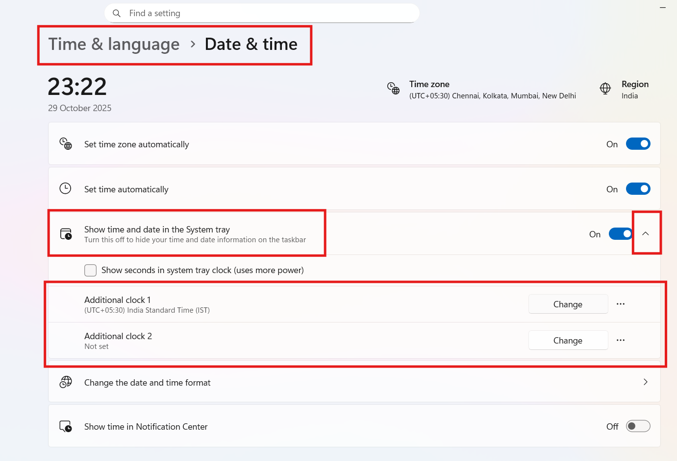 Dodaj zegary wielu stref czasowych w systemie Windows 11