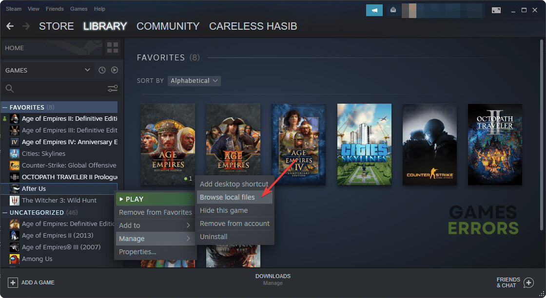 - Idź doBiblioteka gier Steamjak wcześniej.