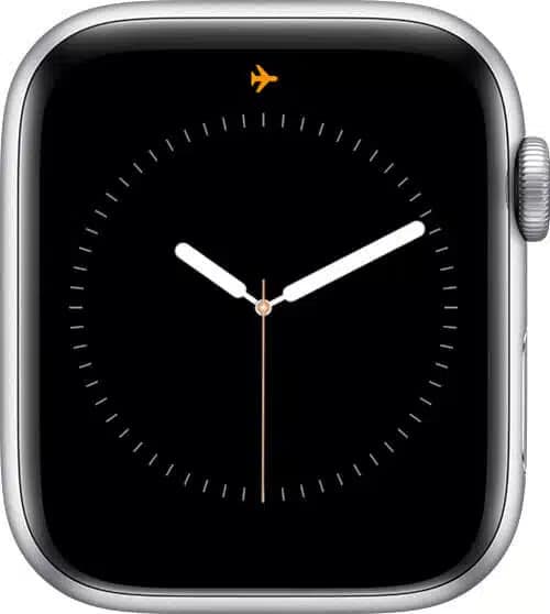 Jeśli widzisz ikonę Samolotu na Apple Watch, oznacza to, że tryb samolotowy jest aktywny i wszystkie funkcje wymagające połączenia bezprzewodowego są niedostępne.