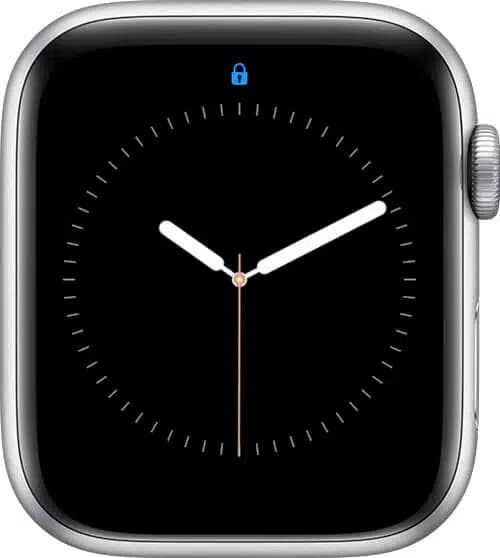 Jeśli zauważysz ikonę kłódki, oznacza to, że Twój Apple Watch jest zablokowany hasłem dodanym do niego podczas konfigurowania Apple Watch. Jeśli funkcja wykrywania nadgarstka jest włączona, blokada hasłem włącza się automatycznie po zdjęciu zegarka Apple Watch z nadgarstka. Bez funkcji wykrywania nadgarstka konieczne będzie ręczne aktywowanie blokady w Centrum sterowania.