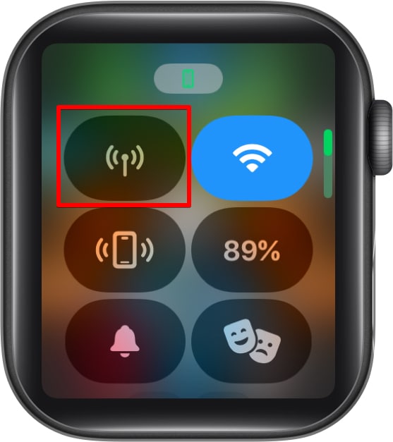 Kliknięcie tej ikony wyłącza i włącza połączenie komórkowe na zegarku Apple Watch wyposażonym w funkcję eSIM.