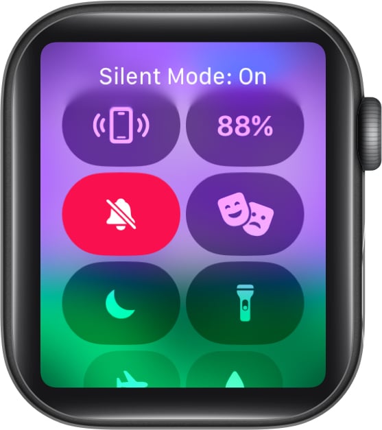Jak sama nazwa wskazuje, dotknięcie tej ikony przełącza Apple Watch w tryb cichy. Po włączeniu ikona dzwonka zmieni się w ikonę przekreślonego dzwonka i odwrotnie.