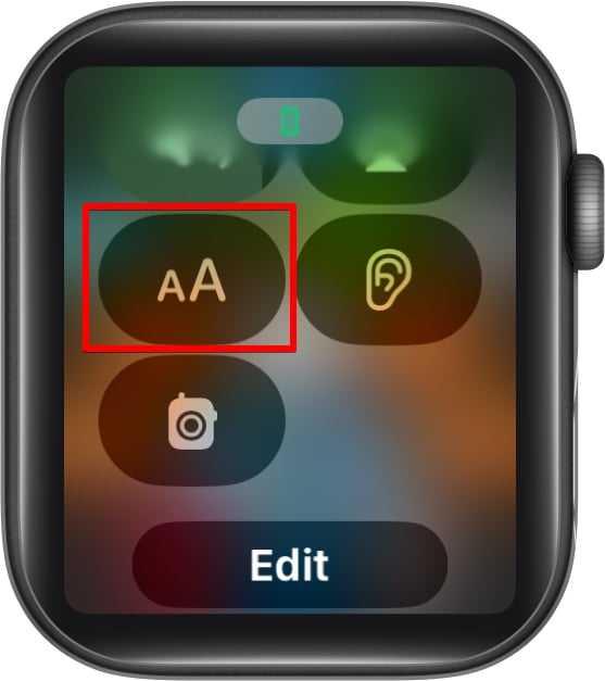 Ta ikona reprezentuje funkcję typu dynamicznego, która pozwala wybrać rozmiar tekstu wyświetlanego na zegarku Apple Watch.