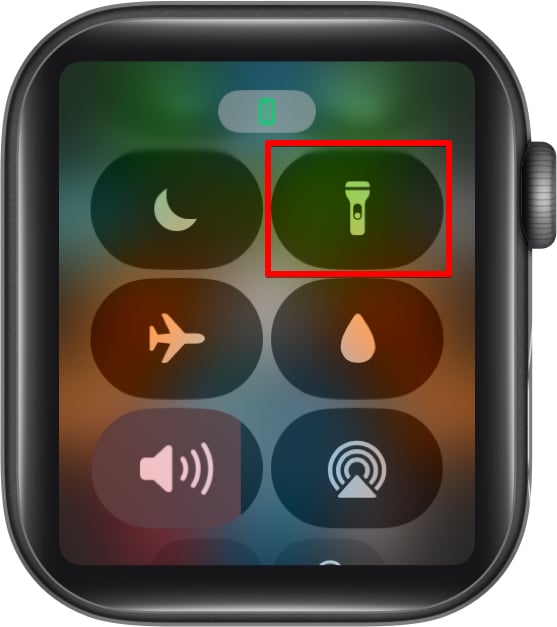 Ten przycisk Centrum sterowania zmienia wyświetlacz Apple Watch w latarkę. Istnieją trzy tryby latarki i możesz przełączać się między nimi, po prostu przesuwając palcem po ekranie.