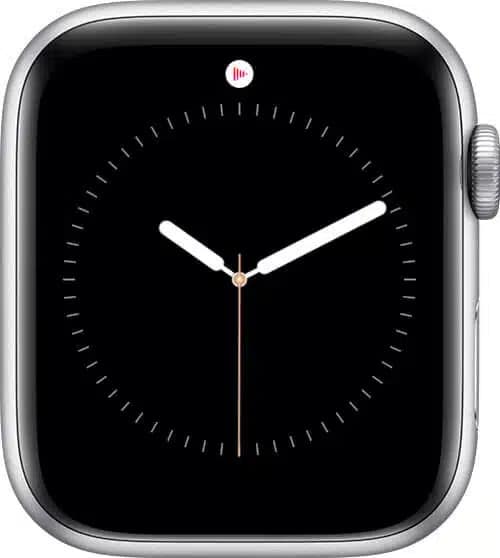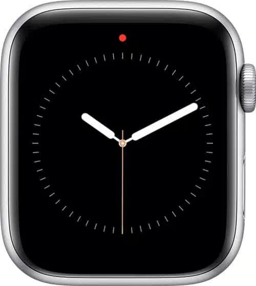 Ikona czerwonej kropki w górnej środkowej części zegarka Apple Watch oznacza, że masz co najmniej jedno nieprzeczytane powiadomienie. Aby uzyskać dostęp do centrum powiadomień, przesuń palcem w dół na tarczy zegarka lub naciśnij i przytrzymaj górną krawędź ekranu, a następnie przesuń w dół, jeśli jesteś w aplikacji.