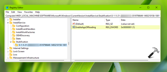 HKEY_LOCAL_MACHINESOFTWAREMicrosoftWindowsCurrentVersionInstallServiceStubification