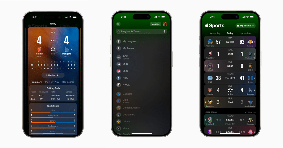 W najnowszej aktualizacji Apple Sports integruje kursy bukmacherskie i usprawniony interfejs użytkownika