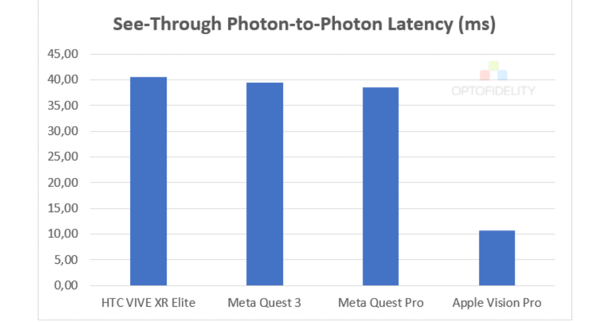 Z kolei inne zestawy słuchawkowe MR, w tym Meta Quest 3, Meta Quest Pro i HTC VIVE XR Elite, wykazywały poziomy opóźnień w zakresie od 35 do 40 milisekund. Chociaż te zestawy słuchawkowe oferują przyzwoitą wydajność, są niewystarczające w porównaniu z przełomowym opóźnieniem osiągniętym przez Apple Vision Pro. Różnica w opóźnieniach podkreśla technologiczną wydajność Apple i zaangażowanie w zapewnianie użytkownikom najwyższej jakości doświadczeń.