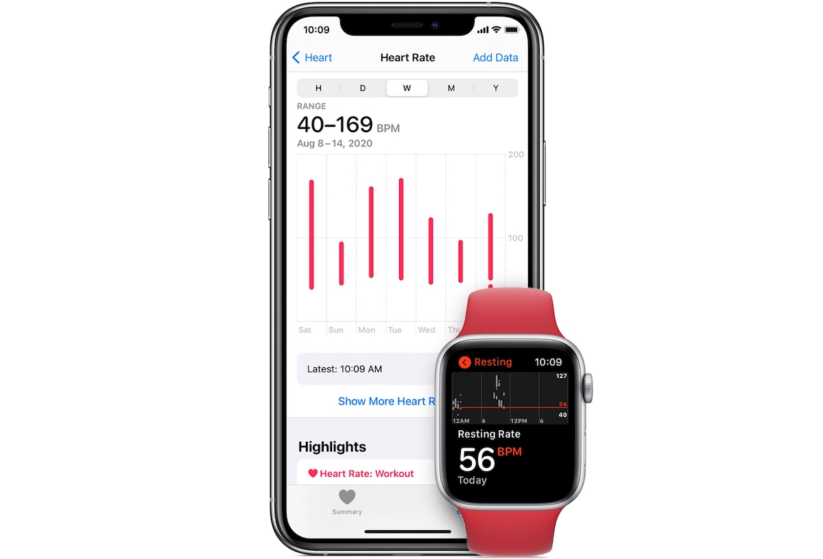 Aplikacja Heart na Apple Watch Series 4 i nowszych może wykrywać i ostrzegać użytkowników o wysokim lub niskim tętnie, nieregularnym rytmie serca lub AFib. Migotanie przedsionków (AFib) to przewlekła choroba serca, w której ciepłotę górnych komór serca nie jest zsynchronizowane z dolnymi komorami, a nieleczone może spowodować niewydolność serca lub zakrzepy krwi.