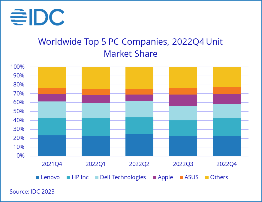 Dostawy w czwartym kwartale 2022 r. są porównywalne z czwartym kwartałem 2018 r., kiedy rynek był ograniczony przez wyzwania związane z dostawami Intela. Jest oczywiste, że boom związany z pandemią na rynku komputerów osobistych dobiegł końca, jednak pomimo niedawnych spadków roczne dostawy w 2022 r. były znacznie wyższe od poziomów sprzed pandemii i wyniosły 292,3 mln sztuk w całym roku. Popyt pozostaje jednak problemem, ponieważ większość użytkowników ma stosunkowo nowe komputery osobiste, a globalna gospodarka się pogarsza.