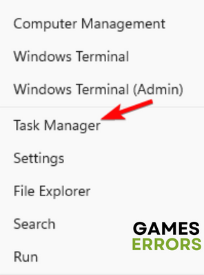 - Wyjdź z gry, a następnie kliknij prawym przyciskiem myszy plikStarti wybierz opcję Menedżer zadań.