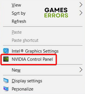 Przejdź na pulpit, kliknij go prawym przyciskiem myszy i wybierzPanel sterowania NVIDIA.