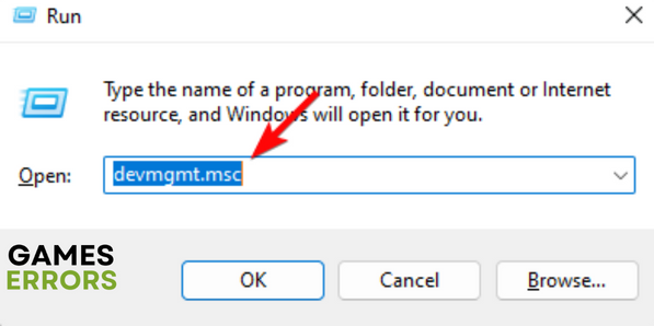 - Typdevror.msc.msci uderzyłWchodzićaby otworzyć okno Menedżera urządzeń.