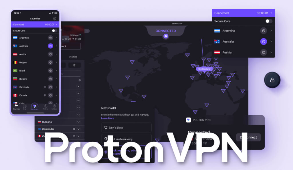 ProtonVPN zapewnia dostęp do serwerów pozbawionych ryzyka w krajach, w których obowiązują dobre przepisy dotyczące ochrony danych. Inne funkcje bezpieczeństwa obejmują dodatkową warstwę szyfrowania z funkcją MultiHop VPN, skuteczną funkcję Kill Switch oraz blokadę reklam Netshield, która blokuje złośliwe oprogramowanie i moduły śledzące.