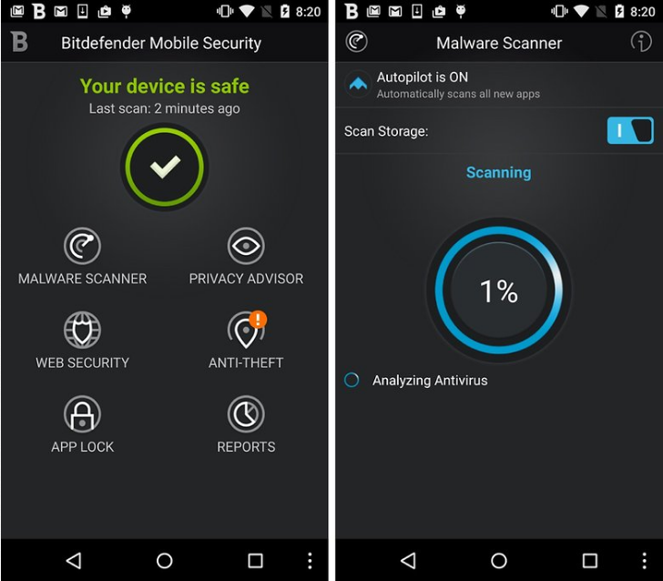 Bitdefender to darmowa aplikacja antywirusowato świetnie sprawdzi się przy analizie wirusów. Nie znajdzie żadnej dodatkowej funkcji poza usuwaniem podejrzanych plików, bezpieczną nawigacją i ochroną przed kradzieżą. Należy zauważyć, że jest to pozytywny punkt integracji ze smartwatchami i jest bardzo lekki, dzięki czemu staje się idealnym kandydatem na starsze smartfony.Najlepszy antywirus dla Androida 2024