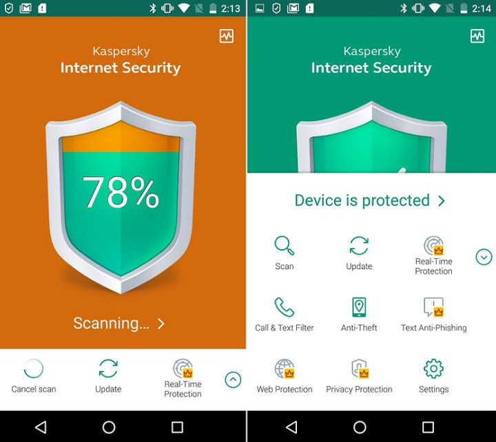 Firma antywirusowaKaspersky Labjest dobrze znana ze swoich badań rynku dotyczących bezpieczeństwa urządzeń mobilnych. Instalując tę aplikację na swoim smartfonie z Androidem, będziesz mógł swobodnie korzystać z podstawowych funkcji, w tym skanera antykradzieżowego i antywirusowego. Chociaż ochrona w czasie rzeczywistym jest funkcją płatności. Aplikacja Kaspersky ma bardzo pozytywne strony, stworzona przez jedną z najbardziej zaufanych firm w tej dziedzinie.