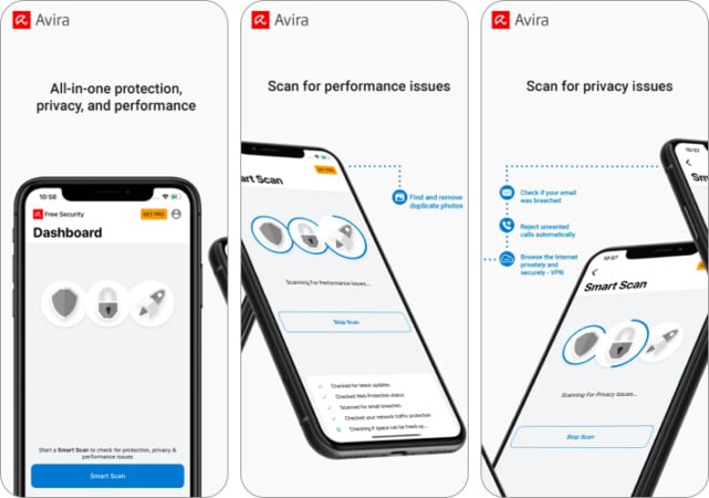 Oprócz szeregu funkcji bezpieczeństwa, Avira zapewnia dodatkowe funkcje wykrywania kradzieży i przestarzałego iOS. Możesz także wykonać kopię zapasową kontaktu z dedykowaną infrastrukturą chmurową. Większość funkcji ochrony jest bezpłatna.