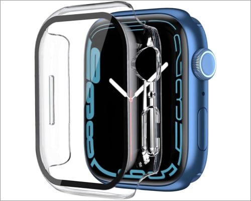 Do ochraniaczy ekranu Apple Watch Series 7 czasami dołączone jest etui zapewniające większą ochronę. Dzięki osłonie ekranu + etui YMHML nie musisz rozbijać banku, aby zapłacić za ochronę swojego smartwatcha.